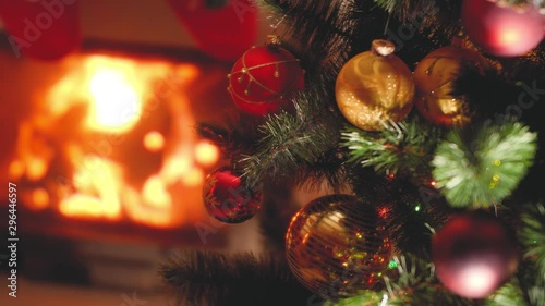 Closeup Toned Video Of Christmas Tree Branches With Baubles And Lights Against Burning Firepalce Abstract Canvas Print Abstra Kirill Ryzhov
